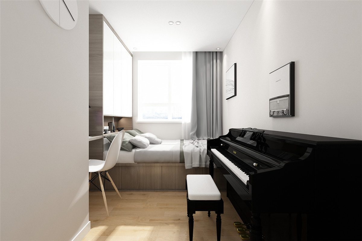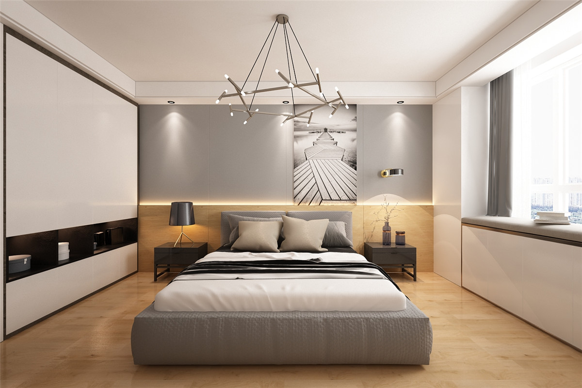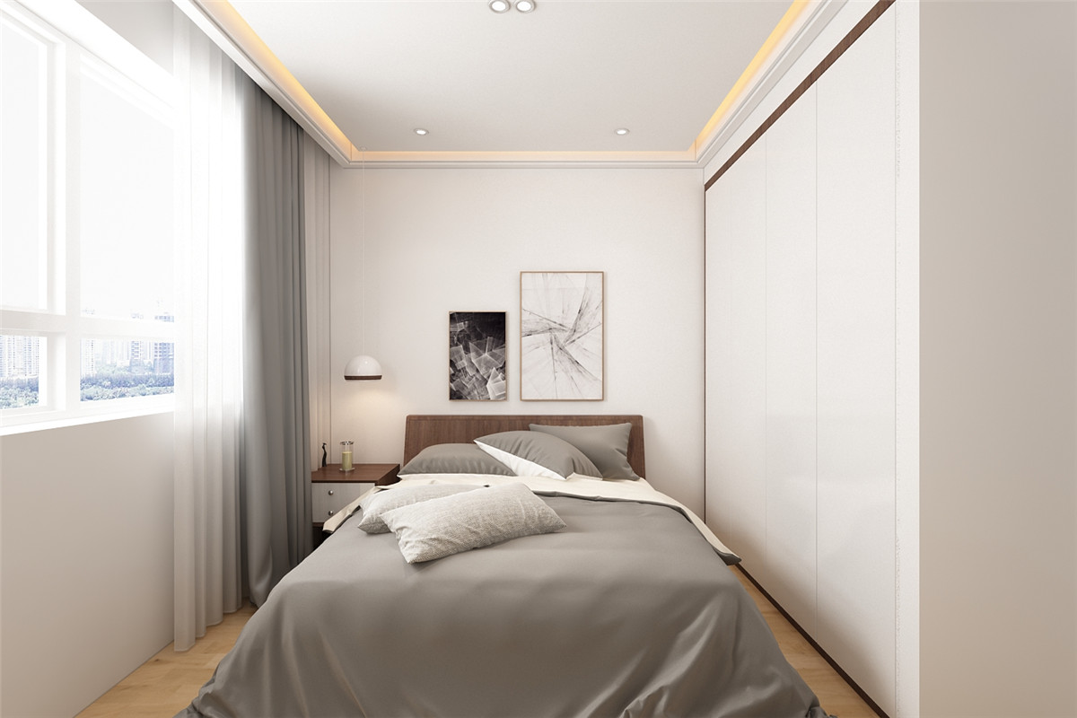 主臥的的暖色基調(diào)令人沉靜,走進(jìn)房間,舒服感禁不住來(lái)襲。烏云壁紙、灰色短絨窗簾、配上精致的不銹鋼走線,讓整個(gè)空間溫柔又有氣質(zhì)!
