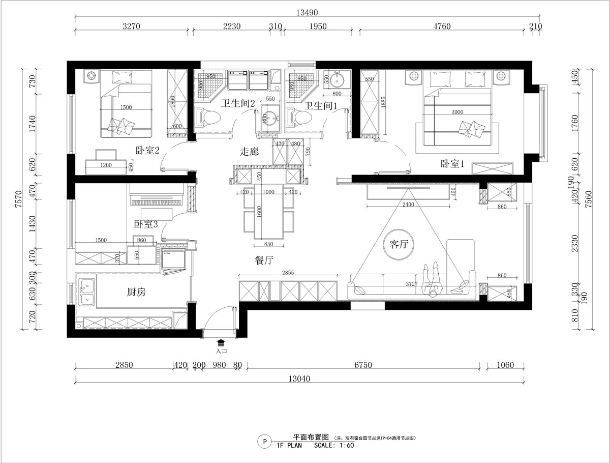 建筑面積 | 125㎡ | 房屋戶型 | 三室兩廳二衛(wèi) |