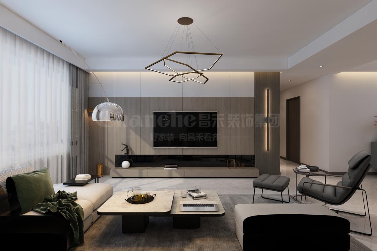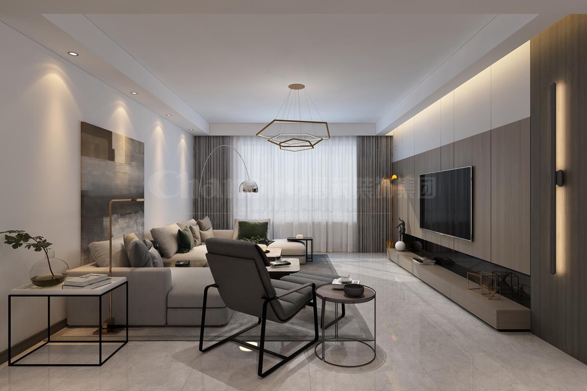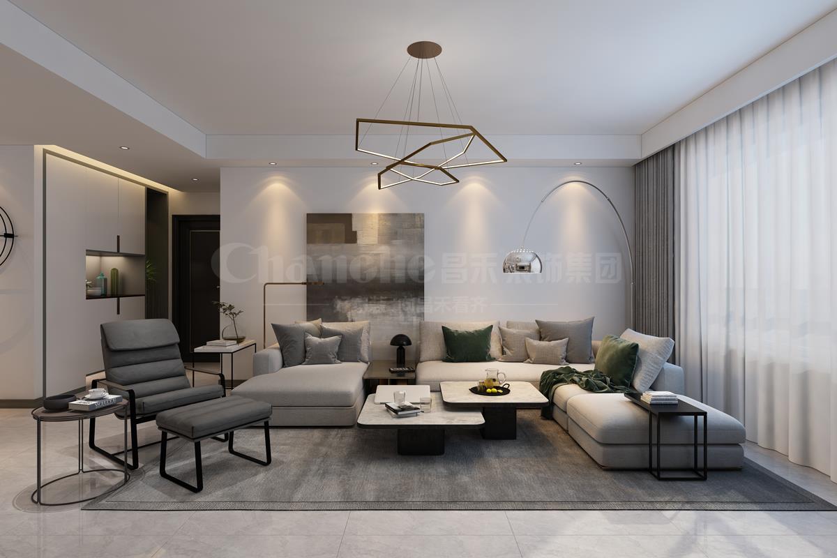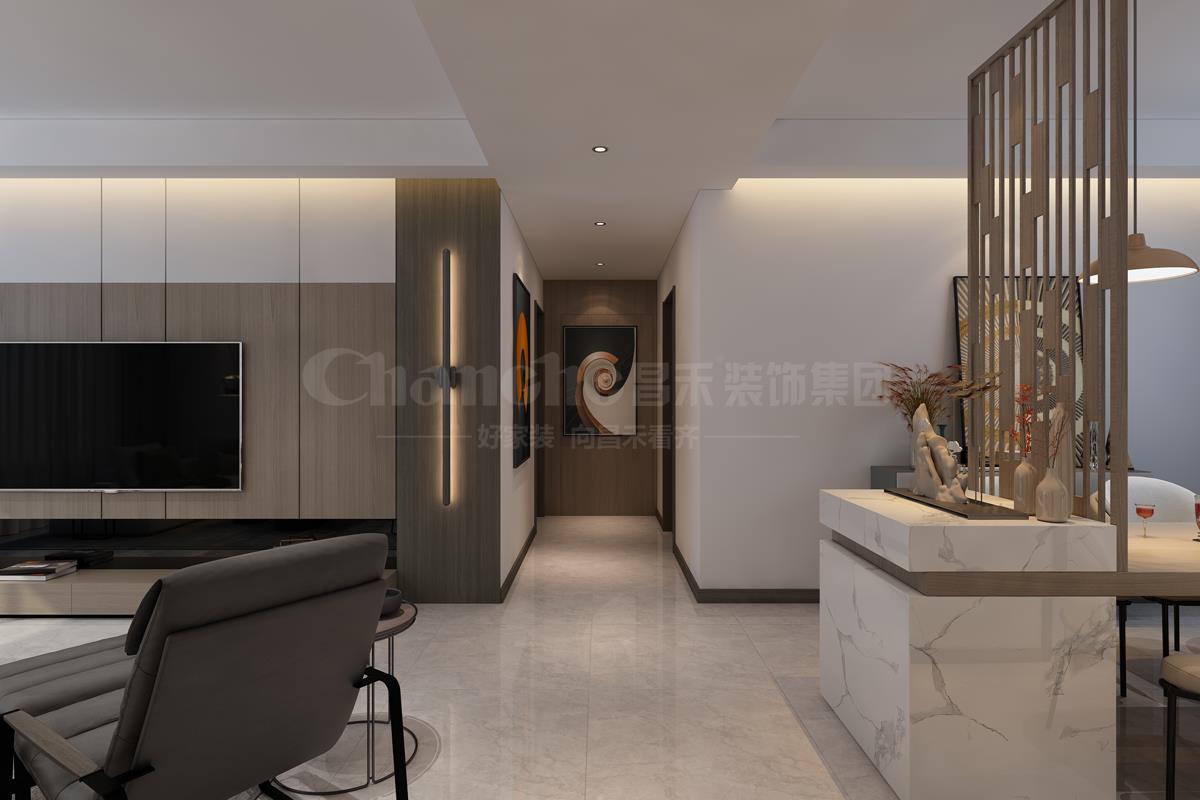 本案業(yè)主是一對四十多歲的夫婦,房子是一套改善型住房,女主人信奉佛教,不喜繁復(fù),傾向靜雅、簡單、明快、充滿生活氣息的品質(zhì)空間,希望合理規(guī)劃后的家能擁有強大的收納功能;昌禾裝飾設(shè)計師以簡約舒適的輕奢風(fēng)為基調(diào),在以低彩度大地色為主的室內(nèi),采用大理石和金屬元素,帶來設(shè)計感的視覺沖擊,同時又具有層次感,讓人對空間的代入感更進一步。