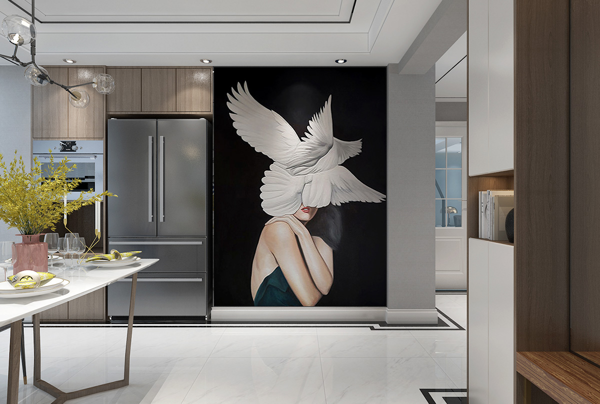 入戶以夸張的掛畫作為入戶玄關(guān),感受到一種風(fēng)格的代入感,給人一種不一樣的感覺。