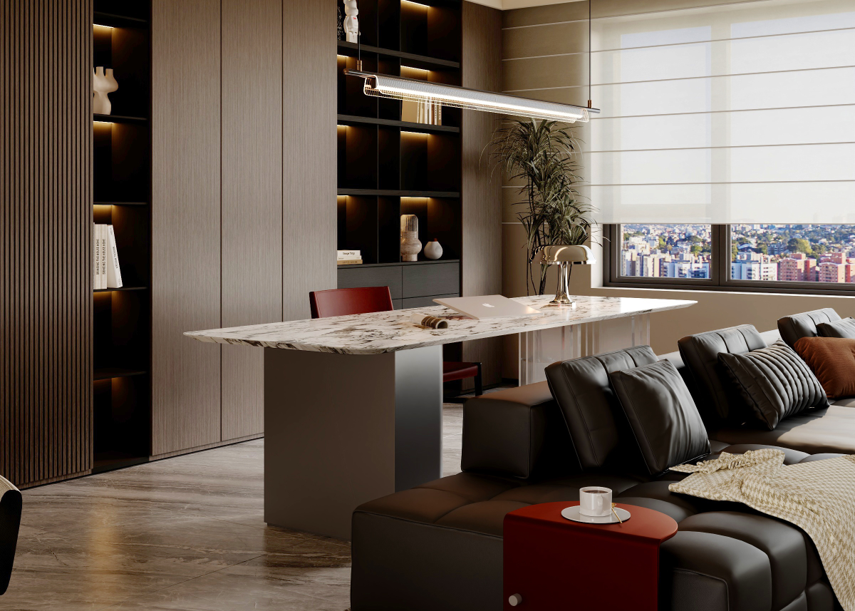 開放式布局模糊空間邊界,與書房自然銜接,家人互動(dòng)、好友相聚,都能在這片簡(jiǎn)而不凡的場(chǎng)域里,感受意式生活的自在與優(yōu)雅。