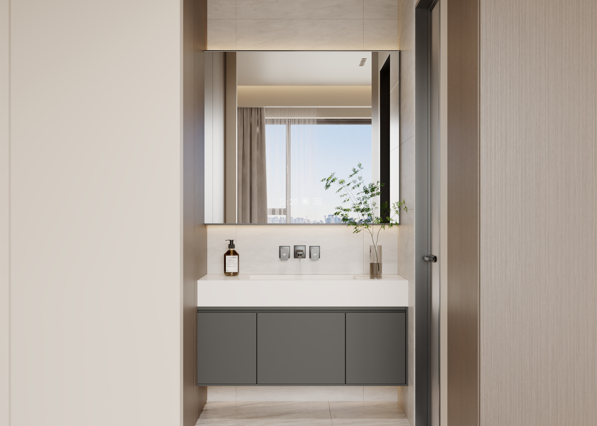 主臥衛(wèi)生間干濕分離,將干區(qū)外置,結(jié)合收納柜,提升使用效率,在這里,每一寸設(shè)計(jì)都為卸下疲憊,回歸最本真的休憩狀態(tài)。