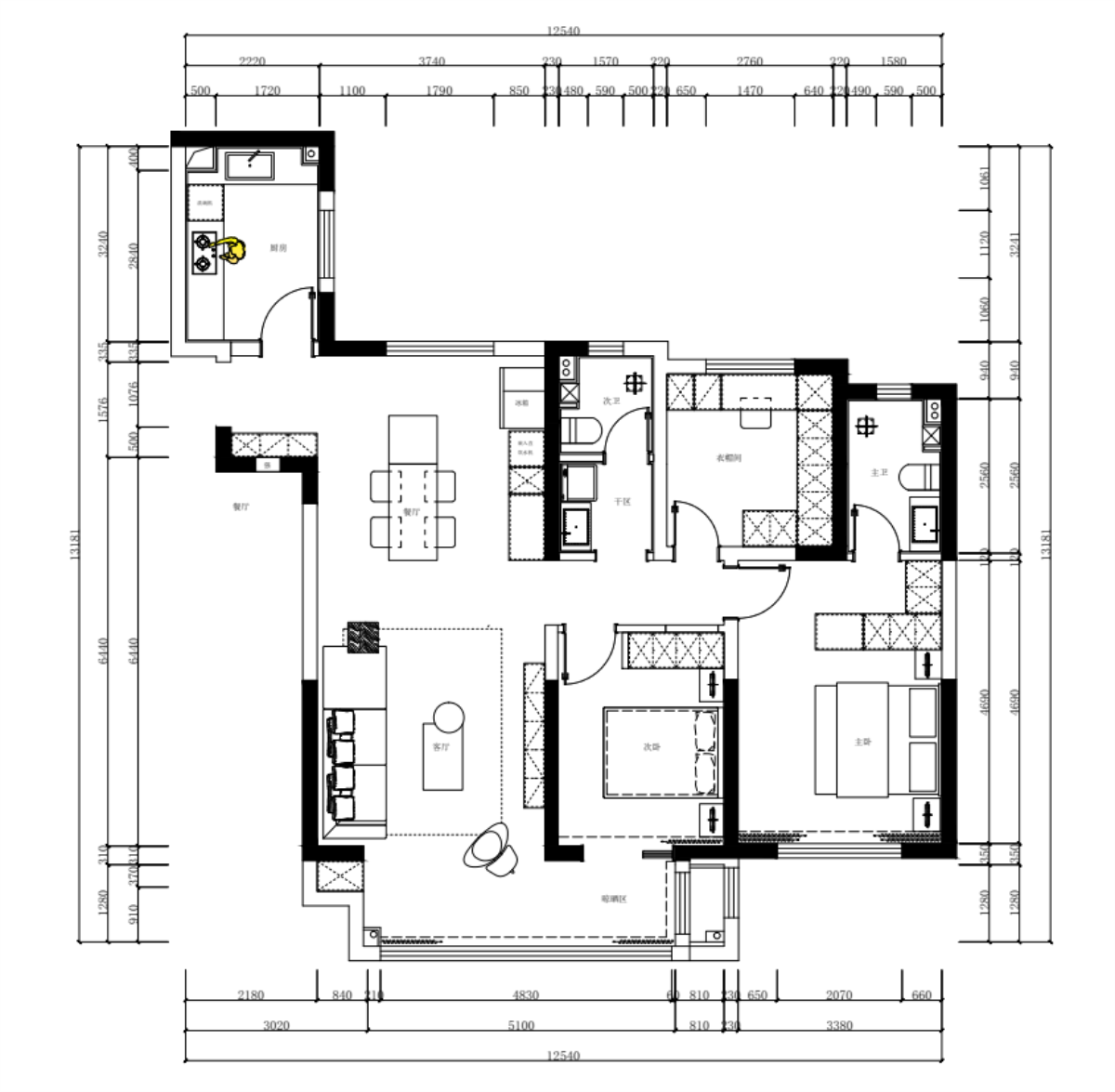 本案是一套三室兩廳兩衛(wèi)的戶型,業(yè)主是一對(duì)小夫妻,這套房子也是作為婚房來使用。整體的設(shè)計(jì)風(fēng)格簡(jiǎn)單純粹,大面積的白色中加入紅色點(diǎn)綴,帶來亮眼又活躍的清新氛圍。同時(shí)還滿足了女主人擁有一個(gè)獨(dú)立衣帽間的夢(mèng)想。